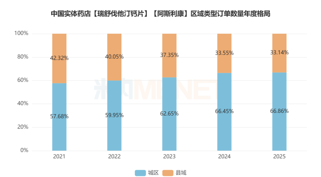 从可定的订单数量区域类型分布方面,城区的占比呈现逐年递增态势,2025年为66.86%,可见其销售主力已经稳固在城区,且这一趋势在持续加强。