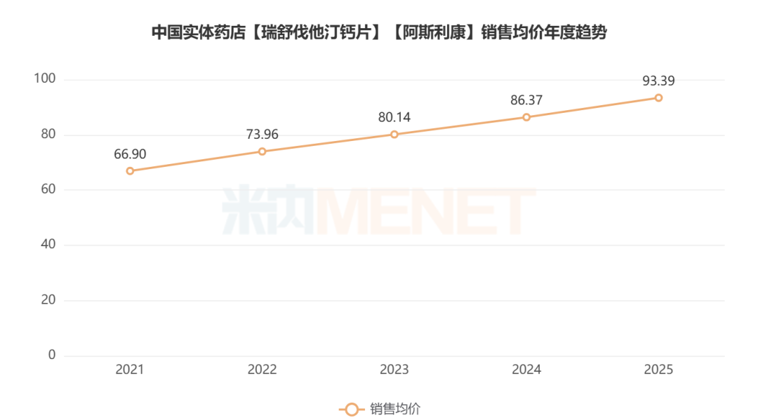销售均价则连年攀升,由2021年的66.9元持续提升至2025年的93.39元。
