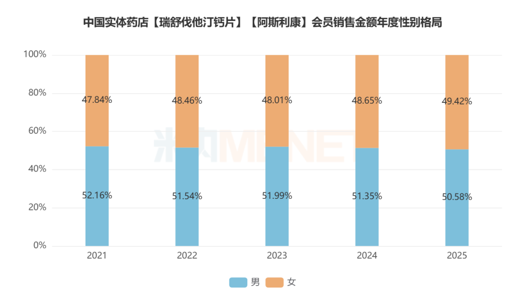 编辑说:米内小票格局数据分析结果显示,2025年原研药可定(瑞舒伐他汀钙片)在院外零售药店市场销售金额、订单数量、销售均价继续攀升,动销铺货率有所下滑。其消费者以中老年人为主,男女比例趋于平衡,购买金额和客单价持续提升,但复购率和购买数量下降。关联购买数据表明,可定与其他心脑血管类的联合用药较为普遍,尤其倾向于与益适纯、拜阿司匹灵等原研药品牌搭配使用。