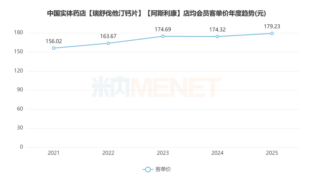 店均会员客单价基本呈现持续提升态势,2025年达179.23元。