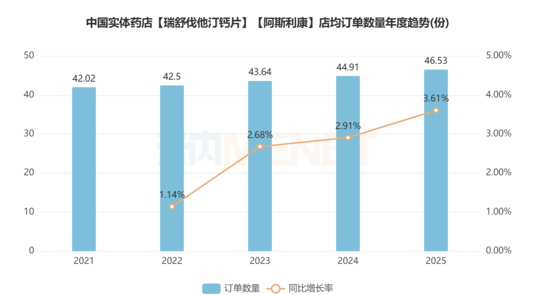 店均订单数量亦呈现逐年增长态势,2025年为46.53份,同比增长3.61%,可见市场基础需求稳定。