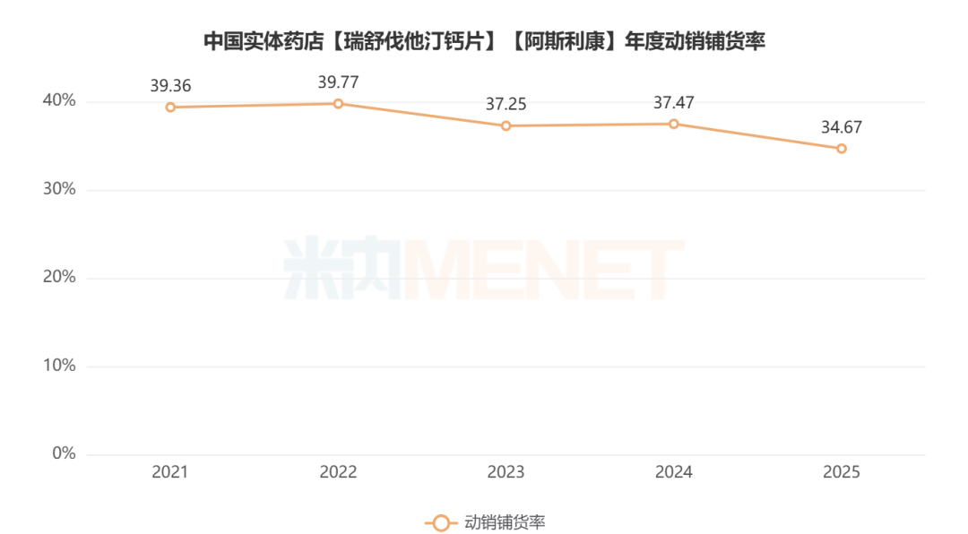可定的动销铺货率有所波动,2025年为34.67%,为近5年来最低,市场渗透力可能进入下行通道。
