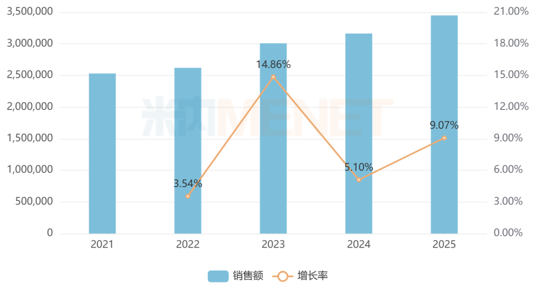 米内网数据显示,近年来中国城市公立医院、县级公立医院、城市社区中心以及乡镇卫生院(简称中国公立医疗机构)终端外用药(化药)销售额逐年上涨,2025年逼近350亿元,同比增长9.07%。
