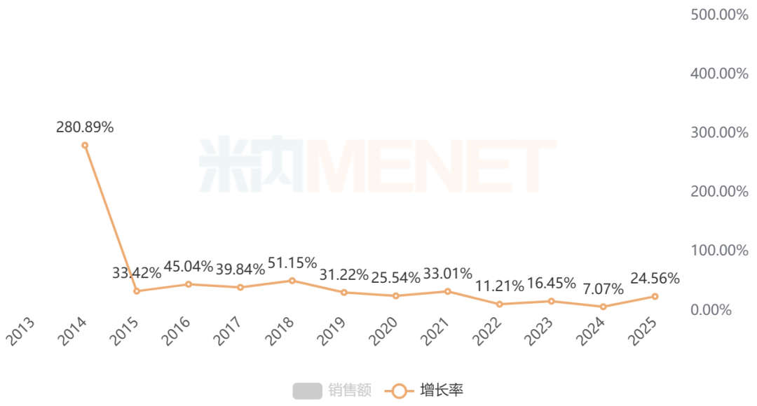氟比洛芬凝胶贴膏为国家医保乙类品种,可用于骨关节炎、肩周炎、肌腱及腱鞘炎、肌肉痛等疾病及症状的镇痛、消炎。近年来,该药在中国公立医疗机构终端持续放量,销售额由2013年的不足1亿元持续增长至2025年超35亿元。