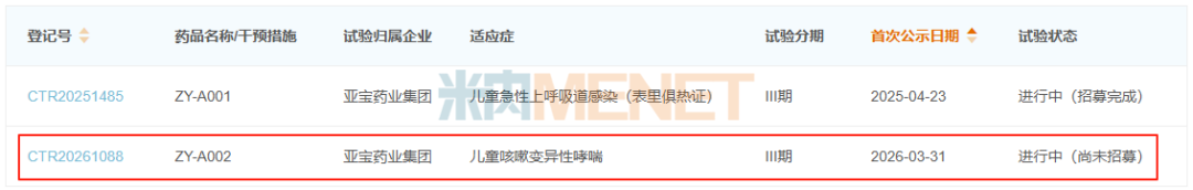 ZY-A002为化药1.1类新药,主要用于儿童咳嗽变异性哮喘(风邪恋肺证),亚宝药业在2025年9月获得了该新药的临床批件,2026年3月底正式启动III期临床,该产品是公司首个申报的中药1.1类新药。