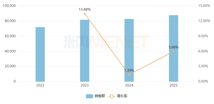 在中国三大终端六大市场(统计范围见文末),近两年中成药的销售规模呈连续下滑态势,2025年为4008亿元,亚宝药业逆势正增长,2023-2025年均有8亿元以上的销售成绩。