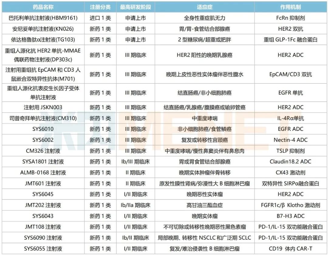 巴托利单抗注射液(FcRn抑制剂)、安尼妥单抗注射液(HER2双抗)、依达格鲁肽α注射液(重组GLP-1Fc融合蛋白)分别于2024年7月、2025年9月、2025年10月提交NDA获受理,有望于今年及明年获批上市,为全身性重症肌无力(MG)、胃/胃-食管结合部腺癌、2型糖尿病/超重或肥胖等患者带来新的治疗选择。