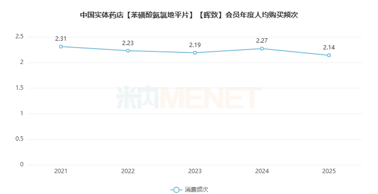 会员年度人均购买频次近年均保持在2次以上,2025年人均消费2.14次。