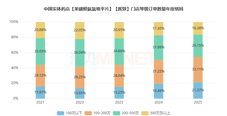 在订单数量门店等级分布方面,年销售额“100-200万”的门店相对较多,占比超过33%。