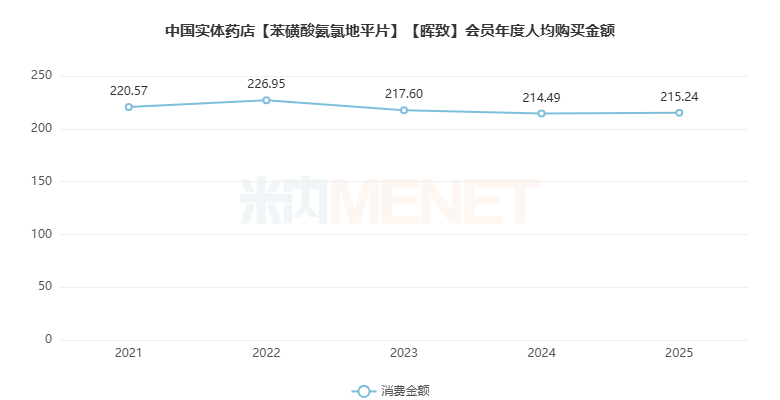 会员年度人均购买金额近年有所起伏,2025年为215.24元。