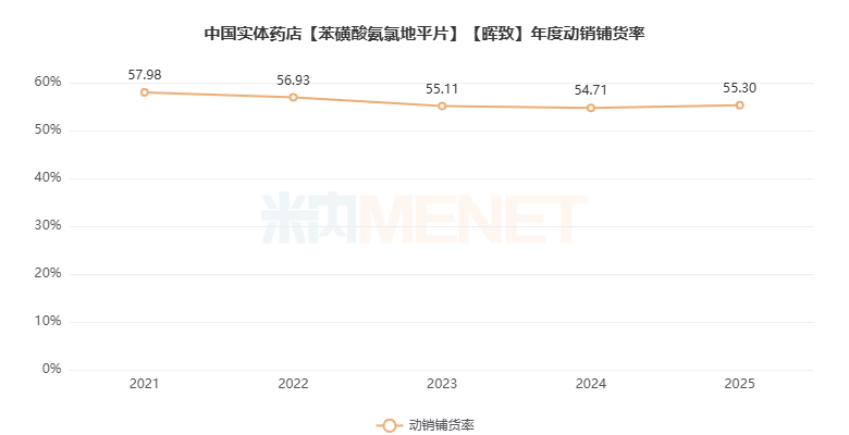 2025年络活喜的动销铺货率为55.30%,同比略有回升。