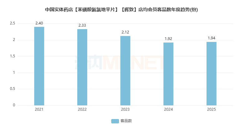 店均会员客品数在连续下滑后,2025年回升到1.94份。