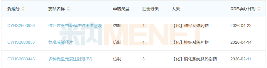 来源:米内网中国申报进度(MED)数据库
