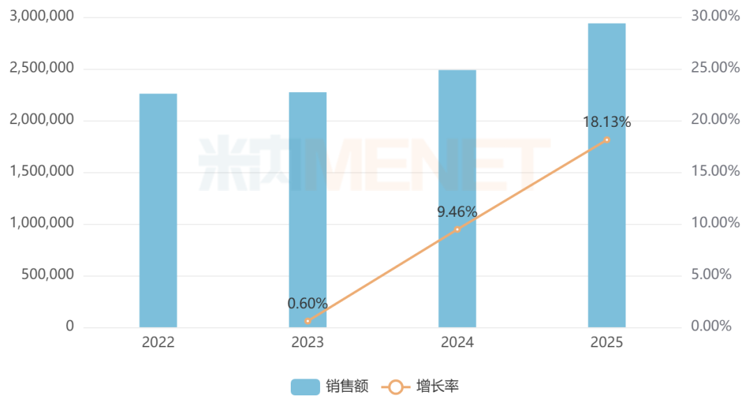 米内网数据显示,吡美莫司乳膏已纳入国家医保乙类目录,近年来在中国三大终端六大市场的销售额均以两位数的增速持续增长,2025年超过4亿元,同比增长31.45%,原研厂家晖致独占市场份额超7成。